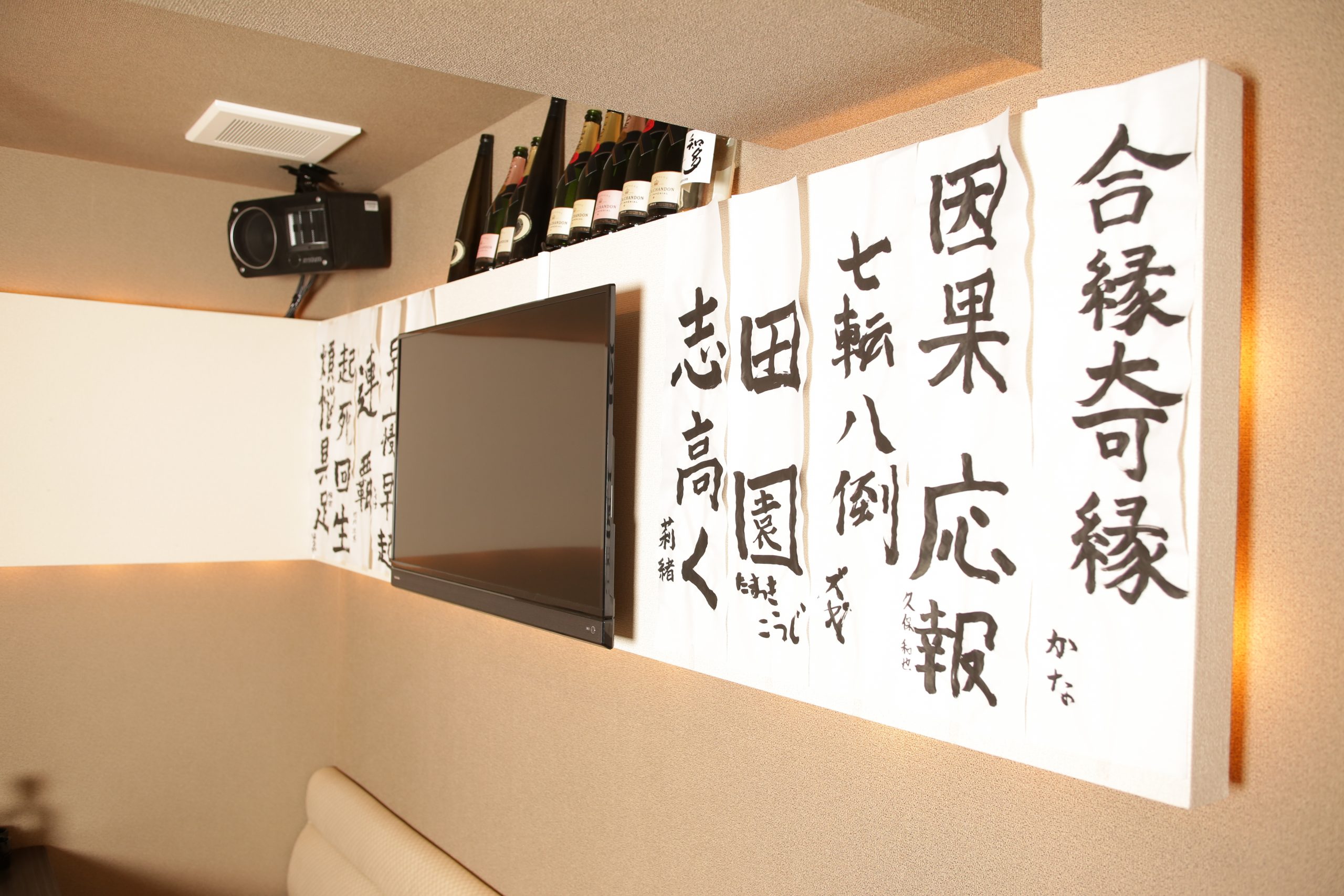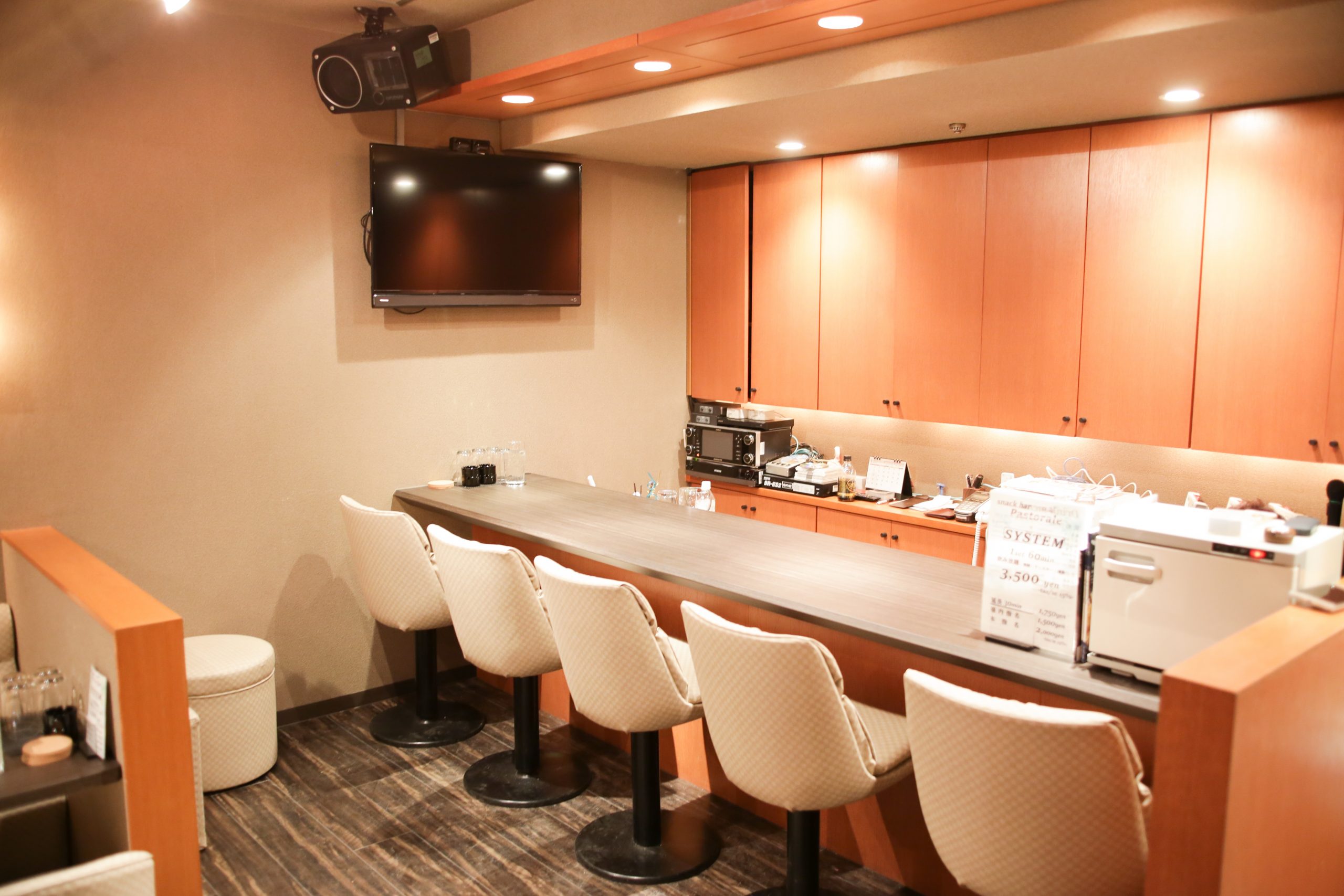 店内には3つのモニターがありどの席からでも歌い放題のカラオケや映像を楽しむことができます。